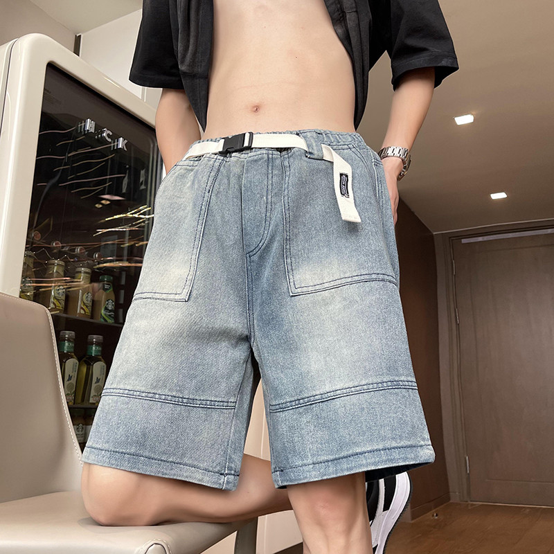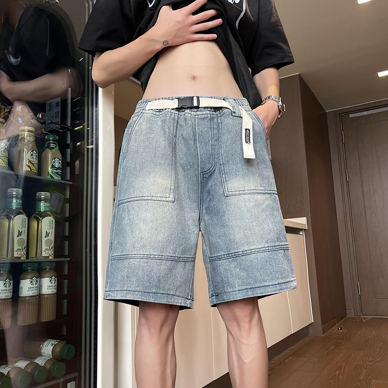 "스트릿 무드 완성! 워싱 와이드 데님 반바지 + 벨트 세트 👖🔥"