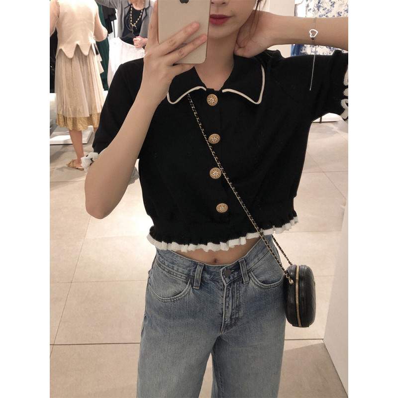 "사랑스러움 한 스푼, 트렌디함 두 스푼! 레이스 카라 크롭티 💕✨" 러블리한 레이스 카라 디테일로 로맨틱한 무드를 더한 크롭티! 살짝 짧은 기장감이 다리를 길어 보이게 해 주고, 걸리쉬하면서도 세련된 스타일을 완성해 줘요.🌷💖 가볍고 편안한 소재로 여름에 착용하기 좋아요! 하이웨스트 팬츠와 매치하면 캐주얼하면서도 스타일리시한 데일리룩 완성, 플레어 스커트와 함께하면 여리여리한 러블리룩까지 가능해요. ☁️✨ 단 한 벌로 특별한 분위기를 연출할 수 있는 크롭티, 지금 바로 소장하세요! 💫💛
